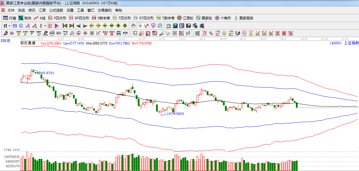 ☆依據(jù)贏家江恩系統(tǒng)極反通道提示:中陰線破位生命線,進(jìn)入弱勢(shì)區(qū)域,看空。