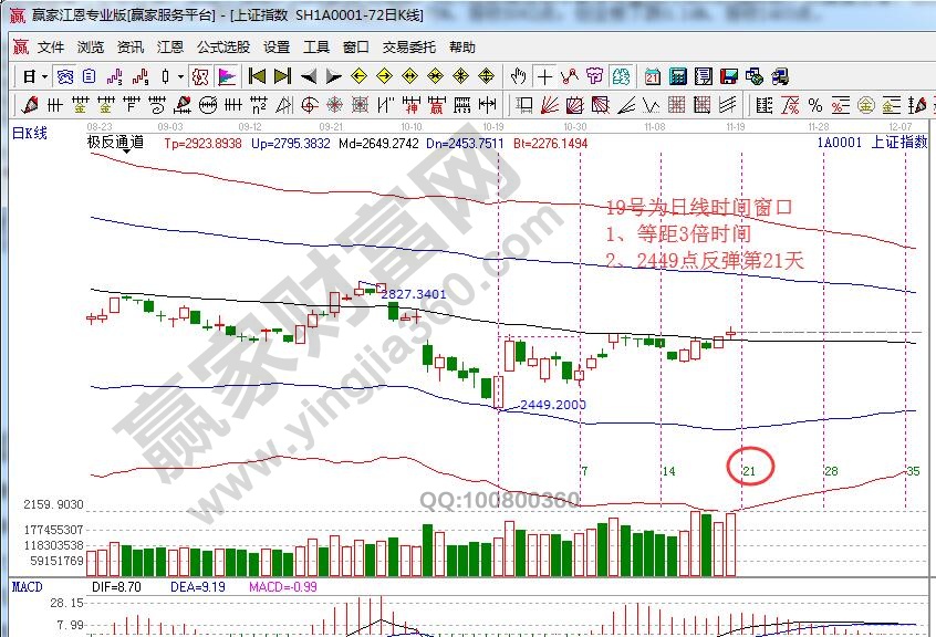 ☆依據(jù)贏家江恩理論系統(tǒng)等距時(shí)間提示:以近期兩低點(diǎn)2018月10月19號(hào)和10月30號(hào)做短線時(shí)間圖,19號(hào)是日線時(shí)間窗口。