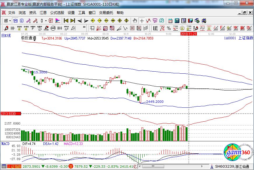 滬指跌2.13%,報收2645點;深成指跌2.83%,報收7879點;創(chuàng)業(yè)板跌2.80%,報收1355點。滬股通凈流出18億,深股通凈流出9億。相應(yīng)的極反通道指標(biāo)的支撐壓力提示,如下圖所示: