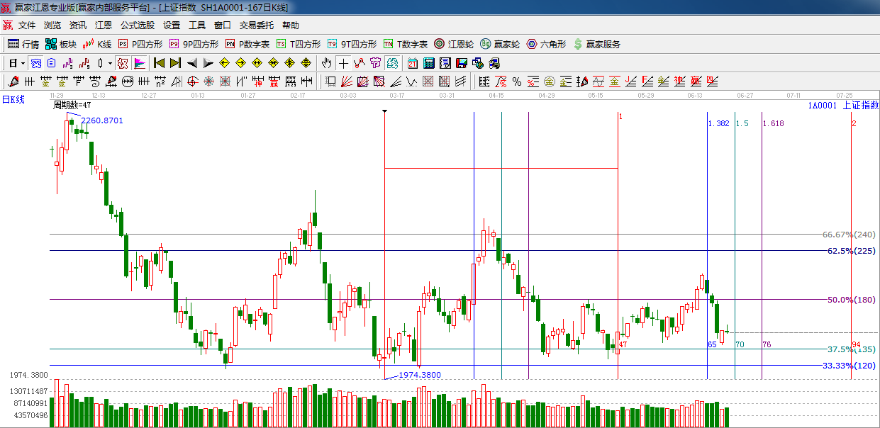 ☆依據(jù)贏家江恩系統(tǒng)黃金時(shí)間周期線提示:下一時(shí)間窗口在25號(hào)附近。