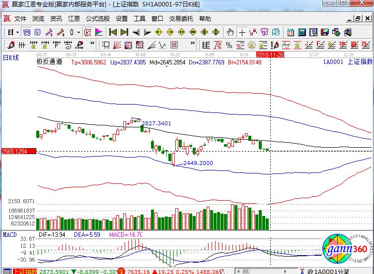 滬指跌0.04%,報收2574點;深成指漲0.25%,報收7635點;創(chuàng)業(yè)板漲0.83%,報收1315點。盤面上看,通信設備、5G、網(wǎng)絡安全、獨角獸概念、手游、網(wǎng)絡游戲等板塊漲幅居前;福建自貿(mào)區(qū)、機場航運、高送轉、銀行、物流、石油等板塊跌幅居前。滬股通凈流入3.6億,深股通凈流入5300萬。相應的極反通道指標的支撐壓力提示,如下圖所示: