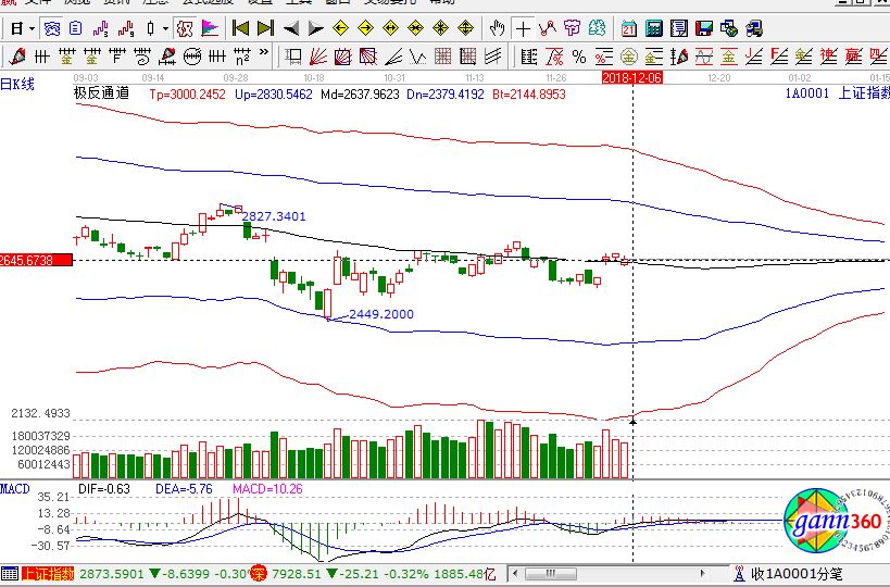 滬指跌0.61%,報(bào)收2649點(diǎn);深成指跌0.32%,報(bào)收7928點(diǎn);創(chuàng)業(yè)板漲0.22%,報(bào)收1381點(diǎn)。盤面上看,知識(shí)產(chǎn)權(quán)保護(hù)、豬肉、ST板塊、有色、白酒等板塊漲幅居前;創(chuàng)投、獨(dú)角獸概念、證券、物流、跨境電商等板塊跌幅居前。滬股通凈流入12億,深股通凈流出6300萬。相應(yīng)的極反通道指標(biāo)的支撐壓力提示,如下圖所示: