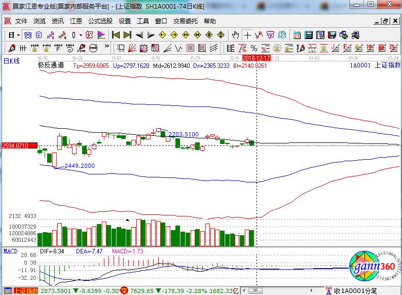 滬指跌1.53%,報(bào)收2593點(diǎn);深成指跌2.28%,報(bào)收7629點(diǎn);創(chuàng)業(yè)板跌2.82%,報(bào)收1310點(diǎn)。盤面上看,創(chuàng)投、醫(yī)療器械、通信服務(wù)、生物制品、5G、半導(dǎo)體等板塊跌幅居前。滬股通凈流入2億,深股通凈流出6億。相應(yīng)的極反通道指標(biāo)的支撐壓力提示,如下圖所示: