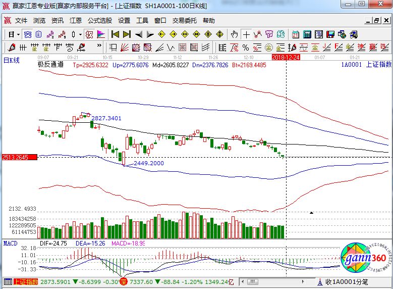 滬指跌0.79%,報(bào)收2516點(diǎn);深成指跌1.20%,報(bào)收7337點(diǎn);創(chuàng)業(yè)板跌0.61%,報(bào)收1270點(diǎn)。盤面上看,手機(jī)游戲、高送轉(zhuǎn)、互聯(lián)網(wǎng)彩票、次新股等板塊漲幅居前;創(chuàng)投、裝配式建筑、上海自貿(mào)區(qū)、租售同權(quán)等板塊跌幅居前。滬股通凈流入7.4億,深股通凈流出6億。相應(yīng)的極反通道指標(biāo)的支撐壓力提示,如下圖所示: