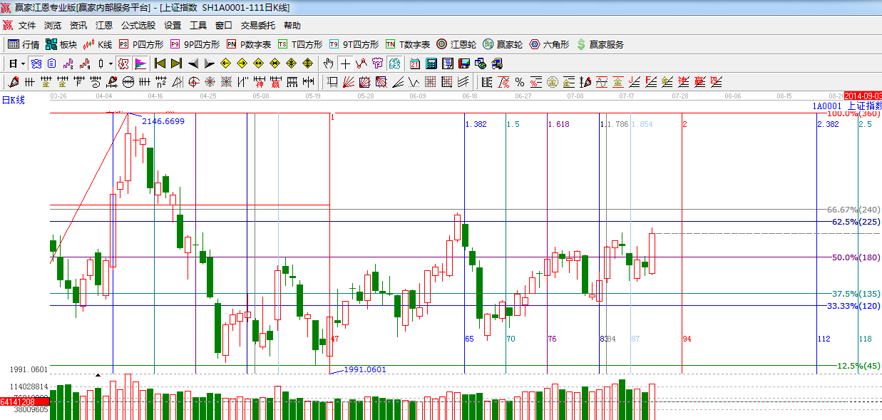 江恩看盤綜述:依據(jù)贏家江恩技術(shù)工具分析得出:周二指數(shù)低開高走,放量突破2060點阻力,指數(shù)下一目標位是2082-2089區(qū)間,是預計短期指數(shù)以高位震蕩為主,日線下一時間窗口是7月28日。操作上,繼續(xù)關(guān)注低位藍籌股以及受益微刺激的高鐵、核電、特高壓、新能源等概念。
