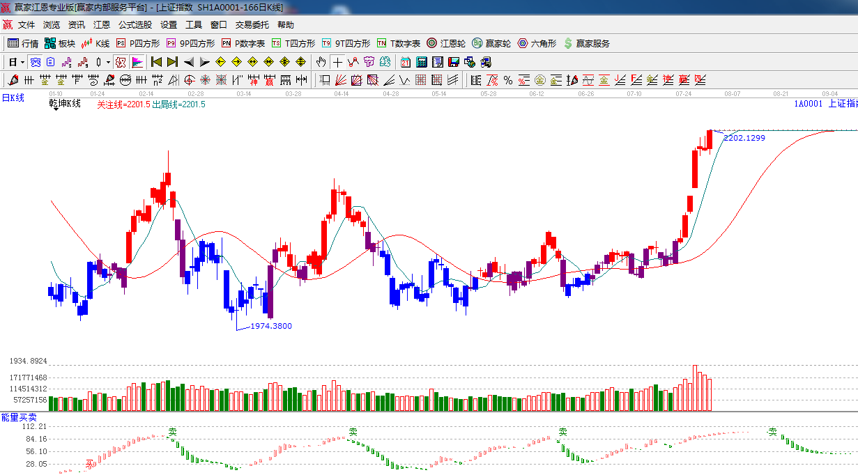 周四滬深兩市小幅低開,早盤圍繞外軌線震蕩整理,午后向上突破,截至收盤,上證2201.56點,上漲20.321.95點;深成7956.91點,上漲103.68點,指數(shù)繼續(xù)創(chuàng)新高,量能逐步縮減。