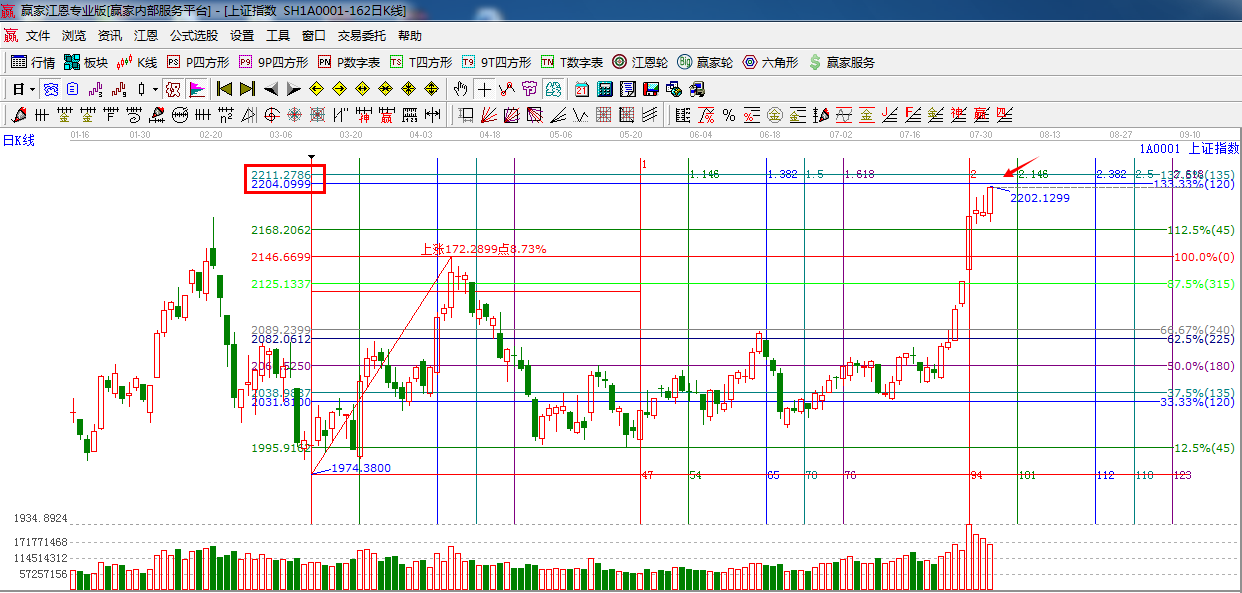 江恩看盤綜述:依據(jù)贏家江恩技術工具分析得出:午后指數(shù)突破2200在創(chuàng)年內(nèi)新高,量能同比縮小,周五關注上方阻力2204-2211區(qū)間阻力,預計指數(shù)將小幅沖高后回落。操作上,合理控制倉位,做好高拋低吸。