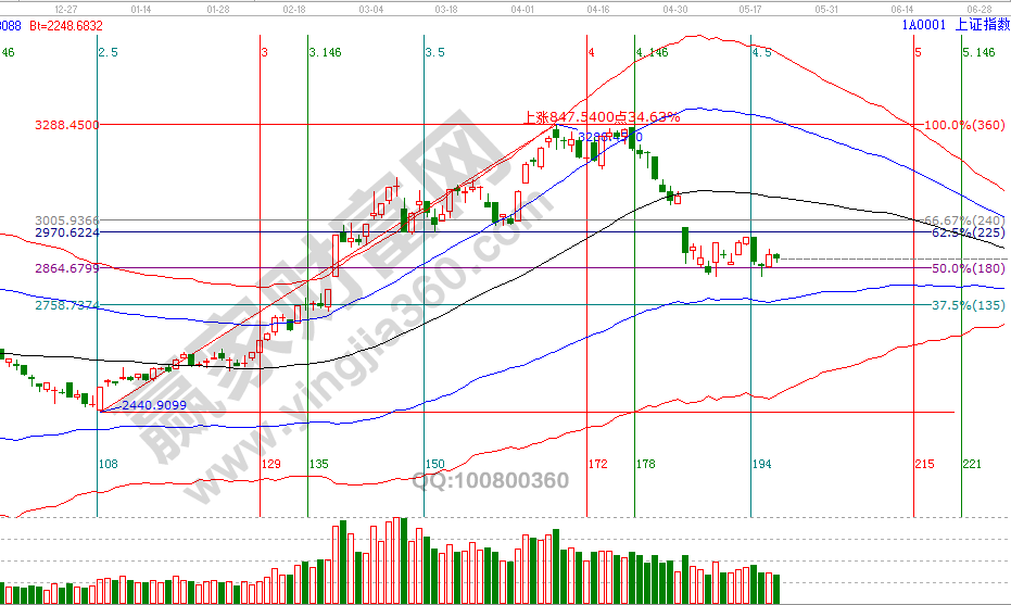 23號(hào)是贏家江恩系統(tǒng)江恩時(shí)間短周期窗口,同時(shí)明天將確認(rèn)空間價(jià)格上一關(guān)鍵位,具體VIP學(xué)員可以通過極反通道查看60分鐘生命線。此線的重要性22號(hào)分析中已談到,得失影響著市場(chǎng)是否回探藍(lán)色下軌線及橫盤整理的時(shí)間。高風(fēng)險(xiǎn)者在2840附近參與的籌碼,要有足夠的耐心和充分的風(fēng)險(xiǎn)控制能力,日線藍(lán)色下軌線是底線,待整固結(jié)束后市場(chǎng)必會(huì)有一波反彈到生命線的機(jī)會(huì)。5月最后一個(gè)日線時(shí)間窗口是28(29)號(hào)。23號(hào)盤中壓力是180度2928點(diǎn)、225度2944點(diǎn),盤中支撐是0度2860、45度2877點(diǎn)。操作策略,指數(shù)擊破黑色生命線進(jìn)入弱勢(shì)區(qū)域,高風(fēng)險(xiǎn)者倉3-4成,低風(fēng)險(xiǎn)者本周進(jìn)入備戰(zhàn)期擇機(jī)參與。