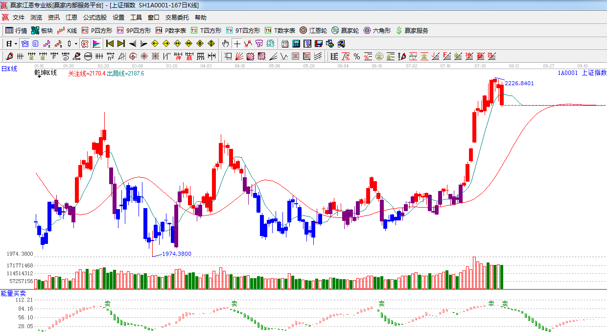 江恩看盤綜述:依據(jù)贏家江恩技術(shù)工具分析得出:8.6日窗口之后,立秋節(jié)點(diǎn),指數(shù)迎來(lái)中陰下跌,主因在于權(quán)重股集體撤退,創(chuàng)業(yè)板的反彈未果,回落調(diào)整屬于正常走勢(shì),下方支撐外軌線2168點(diǎn)附近,預(yù)計(jì)周五大盤將維持弱勢(shì)震蕩