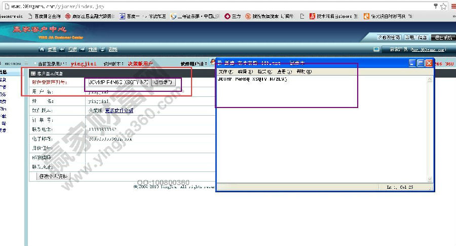 3、進(jìn)入到客戶中心之后的界面,你會(huì)看到下圖中的界面,其中有一個(gè)軟件安裝序列號(hào),你點(diǎn)擊復(fù)制,就可以復(fù)制序列號(hào),將其粘貼到記事本中。