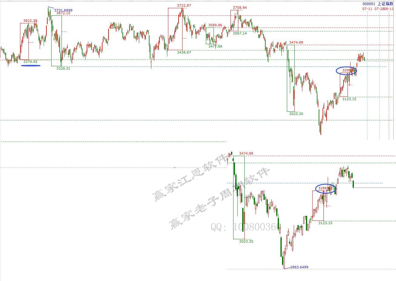 三、預(yù)測跌破3374點(diǎn),直接回調(diào)3286。圖形今日正在朝著工具信號(hào)走。