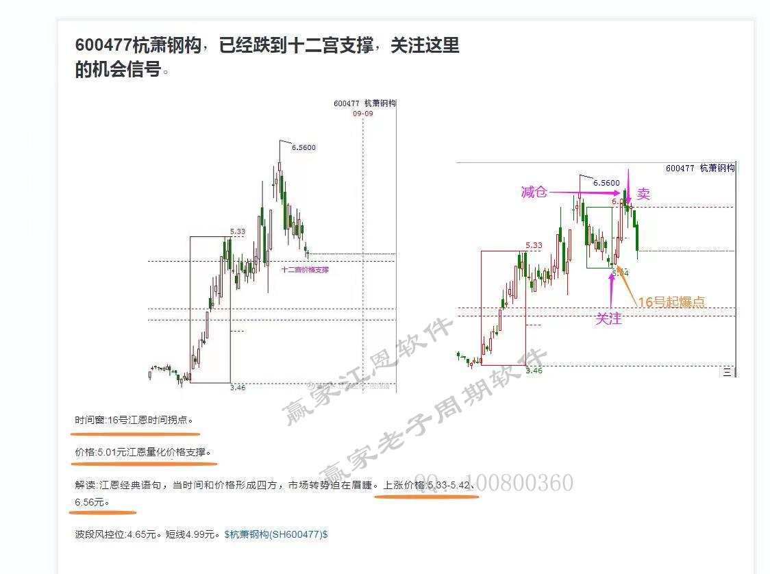 前兩天跟蹤的杭蕭鋼構(gòu),這就是贏家時(shí)價(jià)工具老子十二宮,在實(shí)盤中所呈現(xiàn)的信號——關(guān)鍵的時(shí)間,關(guān)鍵的點(diǎn)位。