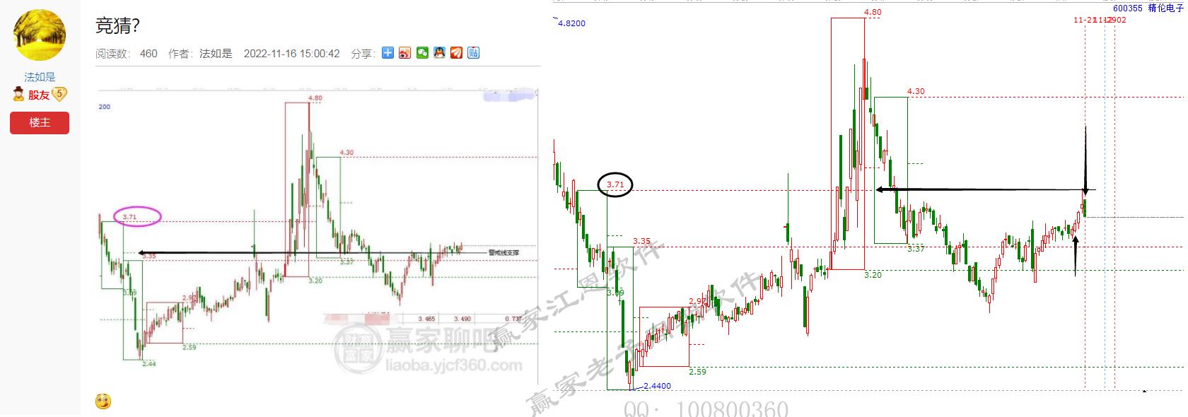 精倫電子之十二宮,最近關(guān)注的一只十二宮短線信號(hào)。11月16日預(yù)測(cè)江恩量化工具(十二宮)價(jià)格警戒線為支撐,空間目標(biāo)在上方3.71元。時(shí)間在21號(hào)。且看最終驗(yàn)證結(jié)果,價(jià)格走出3.71元,時(shí)間21號(hào)來臨后,上漲趨勢(shì)完結(jié)。再現(xiàn)江恩何時(shí)何價(jià)的技術(shù)預(yù)測(cè)。