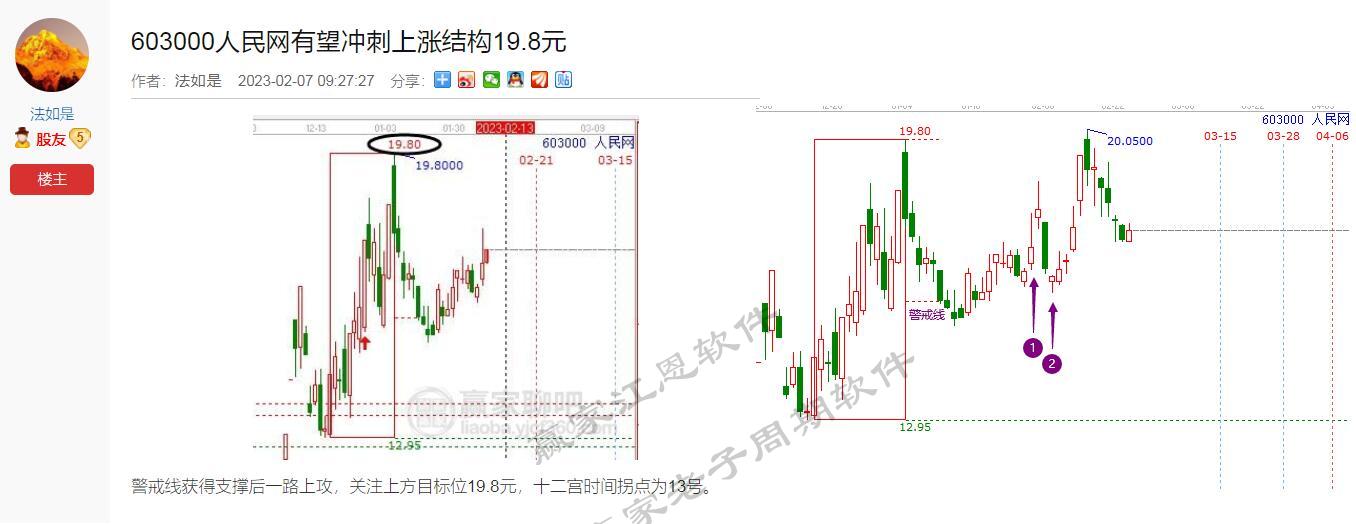 603000人民網(wǎng),2月7號(hào)依據(jù)十二宮工具分析,當(dāng)上漲結(jié)構(gòu)形成,趨勢(shì)上形成風(fēng)險(xiǎn)信號(hào),十二宮的上漲結(jié)構(gòu)起始時(shí)間是12月15號(hào),截止時(shí)間是1月4號(hào)??梢钥闯?/span>4號(hào)之后,股價(jià)神奇般的一路回調(diào)。