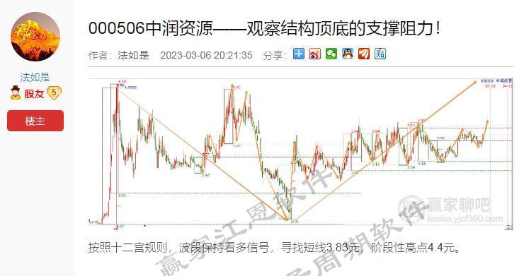 中潤(rùn)資源按照贏家十二宮結(jié)構(gòu)工具信號(hào),預(yù)測(cè)短線3.83元,階段性波段高點(diǎn)4.4元。