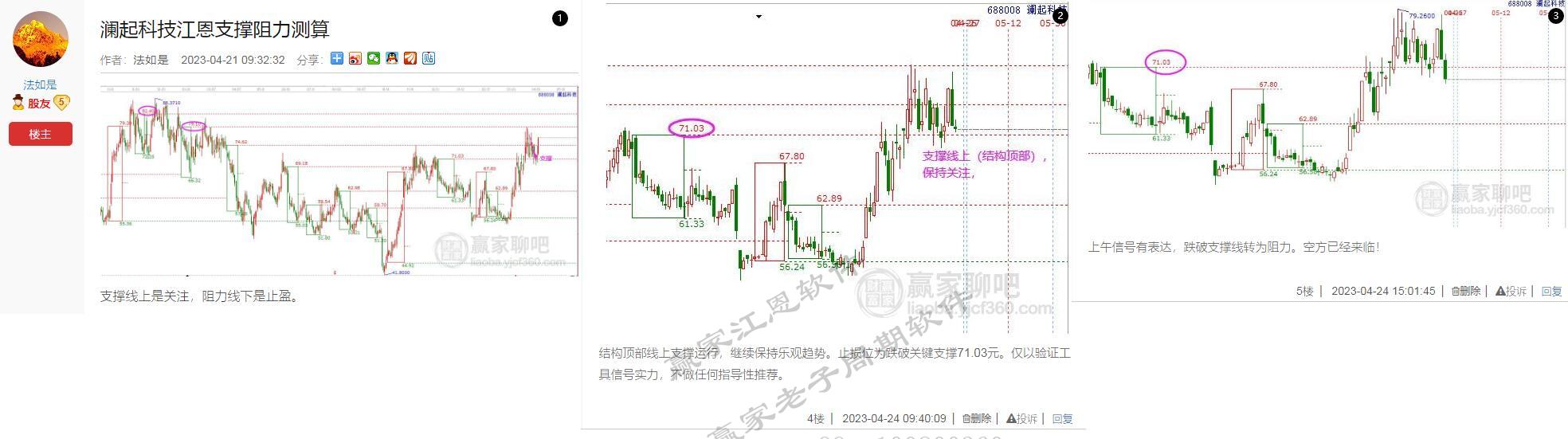 以瀾起科技為例,4月21號關(guān)注,空間上股價已經(jīng)站上十二宮下跌結(jié)構(gòu)頂部71.03元并獲得支撐,按照規(guī)則,線上為支撐,視為關(guān)注信號。第二步,計劃漲多高,也就是目標(biāo)位設(shè)定哪個空間層次,什么價格。