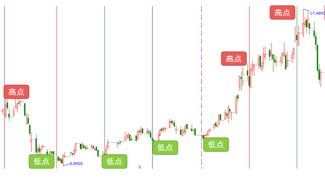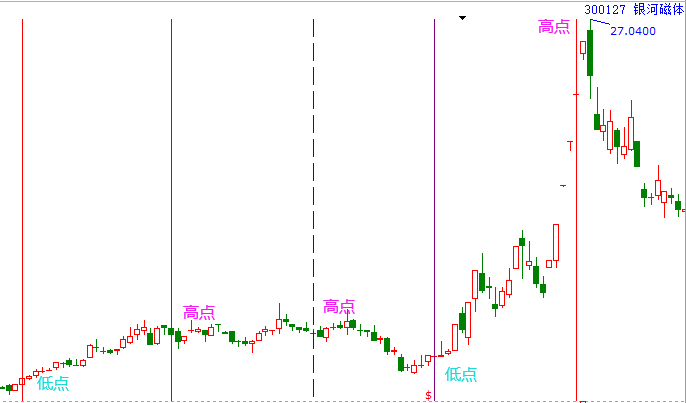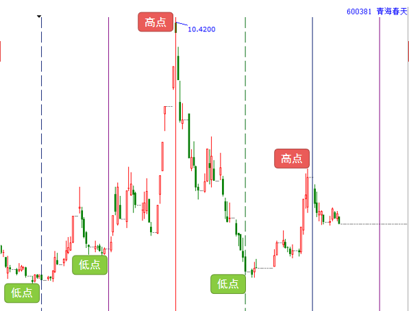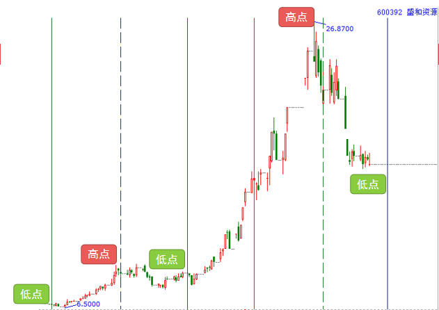 實戰(zhàn)應用:下圖是盛和資源600392老子時間周期數列圖,綠線時間窗口后股價創(chuàng)出6.5元低點即刻上攻,上漲至藍虛線時間窗形成高點,紫線修整結束,股價重回升勢漲幅達2.3倍,遇綠虛線形成高點,每次時間窗口均是股價低高點。