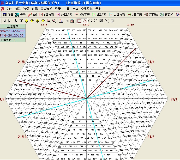 江恩六角形是眾多江恩愛(ài)好者學(xué)習(xí)研究的對(duì)像之一,網(wǎng)絡(luò)中提供的小插件不是很穩(wěn)定,今天發(fā)現(xiàn)贏家江恩網(wǎng)站有免費(fèi)提供的江恩六角形,發(fā)出來(lái)給大家分享;