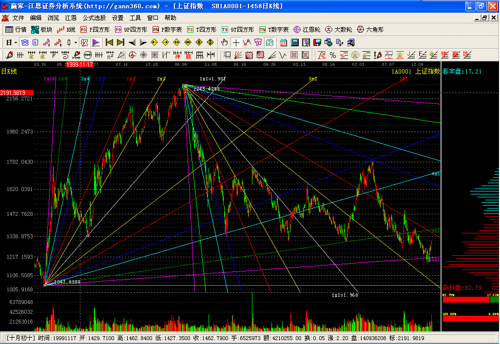 江恩理論是眾所周知的著名證券分析理論之一,是一套完整的操作和預測相結合的理論體系,它的分析方法獨特,分析工具特別,分析和預測效果卻匪夷所思。江恩理論,對一個初學者來說也許感到艱辛,因為這個理論不容易被人理解和掌握,常常使你面對理論和k線無從著手應用,贏家江恩軟件多年來一直致力于江恩理論的研究和應用,并將研究成果制作成分析軟件--《贏家江恩證券分析系統》,誕生于1999年,迄今24年了,深受各大券商從業(yè)人員,私募基金經理所喜愛。這是一套完全的江恩理論的軟件,很好的解決了江恩理論的應用問題,軟件中除具備江恩當年使用的分析工具以外,作者根據多年的研究和理解,獨創(chuàng)了很多的分析工具,這些工具是在理解江恩所說的自然法則的基礎上延伸出來的,有些是江恩理論的復雜應用,可以說這些工具是江恩理論的傻瓜式應用,只要您了解了他們的應用方法,即使你不能完全理解江恩理論也可以應用江恩理論,因為每一個分析工具都遵從自然法則。這就是贏家江恩軟件的重大突破。