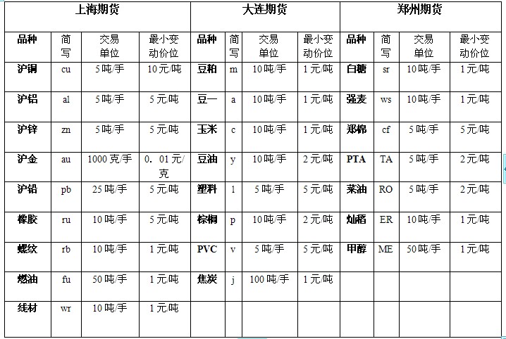 國(guó)內(nèi)商品期貨分為:上海期貨、大連期貨、鄭州期貨