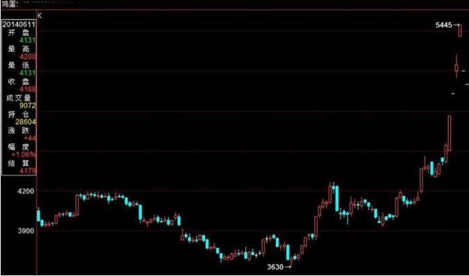 3、商品價(jià)格在逼倉(cāng)的過(guò)程中,一般都會(huì)脫離基本面的影響,價(jià)格持續(xù)的向上突破,并長(zhǎng)期運(yùn)行在背離供求關(guān)系的超高區(qū)域;會(huì)給股市操作帶來(lái)一定的機(jī)會(huì);