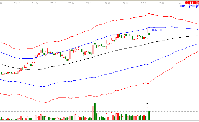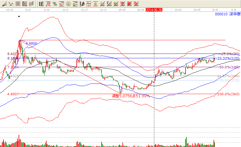 從圖中可以看出如果該股近期突破25%的位置,將繼續(xù)看高一線(xiàn),如果不能突破我們就需要注意生命線(xiàn)位置的支撐點(diǎn)(7.50附近)了,破了就懂的止損出來(lái)。