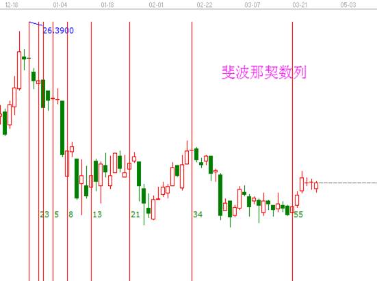 關(guān)于時(shí)間周期,則不能不提神奇的斐波那契數(shù)列1、1、2、3、5、8、13、21、34、55、89、144……,這組數(shù)字之間的關(guān)系,有書(shū)籍專(zhuān)論,這里不詳細(xì)述及。由于它是波浪理論的基礎(chǔ),波浪理論與周期理論也頗有淵源,在運(yùn)用周期理論測(cè)市的時(shí)候,不論是從重要的市場(chǎng)頂部或是底部起向未來(lái)推算,得出斐波那契時(shí)間目標(biāo),這些日子都可能意味著成為市場(chǎng)重要的轉(zhuǎn)折點(diǎn)。在這些時(shí)間窗口,如何取得交易信號(hào),還需輔以其他技術(shù)手段以驗(yàn)證。