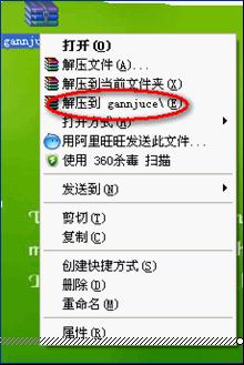 第一步:右鍵單擊下載安裝包文件,再左鍵單擊解壓到gannjuece