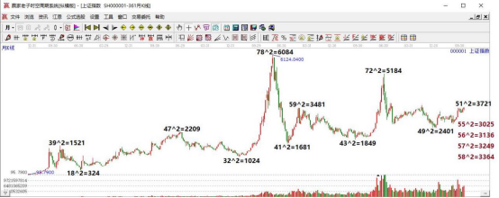 以上表格單數(shù)與雙數(shù)的平方,與滬指歷年來重要拐點均有著數(shù)字關(guān)系,其中有極度精準(zhǔn)的1849,也有略有差別的325、5178、3478、還有部分相差略大的,但整體也在50個點以內(nèi),如6124、2440、2245。