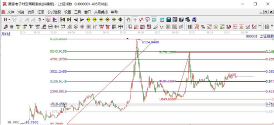 思路5:用歷史極限關(guān)鍵位95至6124、1849至5178做圖。前者0.5倍位置3109,后者0.618位置3121,空間點位相似。