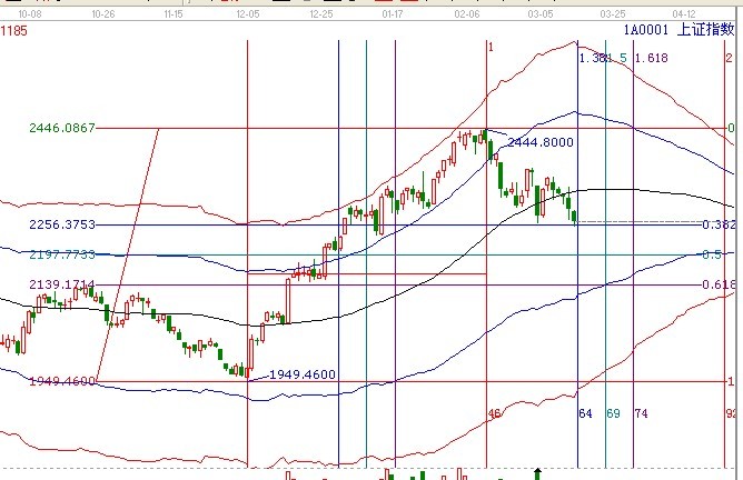 大盤1949.46點上漲到2444.80點運行了45個交易日上漲了495.34點然后展開了一波回調(diào),目前上證指數(shù)處于黃金分割0.382位置,時間也是處于黃金分割時間的1.382時間位置,再一次出現(xiàn)了時間跟價格呈四方形的格局。按照江恩理論分析:黃金分割0.382位置2255.58點不破上證指數(shù)在這里再一次展開一波行情。