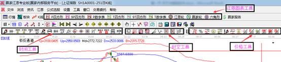 1.軟件安裝成功之后,第一次打開(kāi)軟件,可以看到K線界面,此時(shí),可以按鍵盤(pán)上的F2 F3,調(diào)出完整的工具欄: